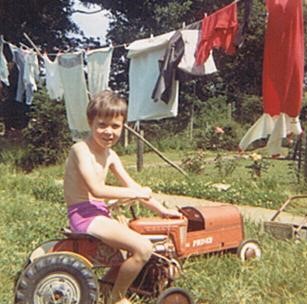 Tractor Boy: Taking time out from busy Great Outdoors schedule in garden on ‘good drying day’, Summer ’73 (Photo copyright: The Wyatt Family Collection)