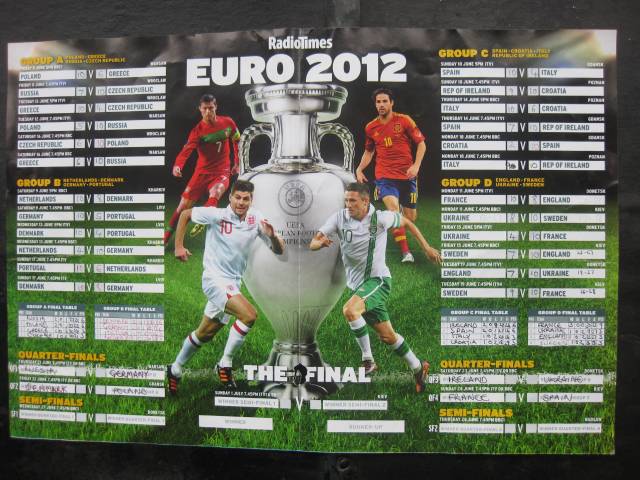 It was easy enough with the other groups, but in Group D –England’s group – I have to break it to you that French France won all three matches and the other three teams won one each. If it was down to old-fashioned goal difference followed by goals scored, Sweden would have bagged second place (26 goals scored, 28 conceded), with England just missing out (25-27) and Ukraine bottom (19-27). But – on the whim of YooArthur bosses Michel Platypus and Seth Blather – it appears that you only take into consideration the matches involving the teams in question.