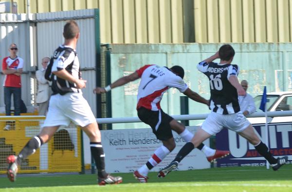 Pires Power: Loick lashes home Woking’s third on Saturday (photo courtesy of David Holmes)