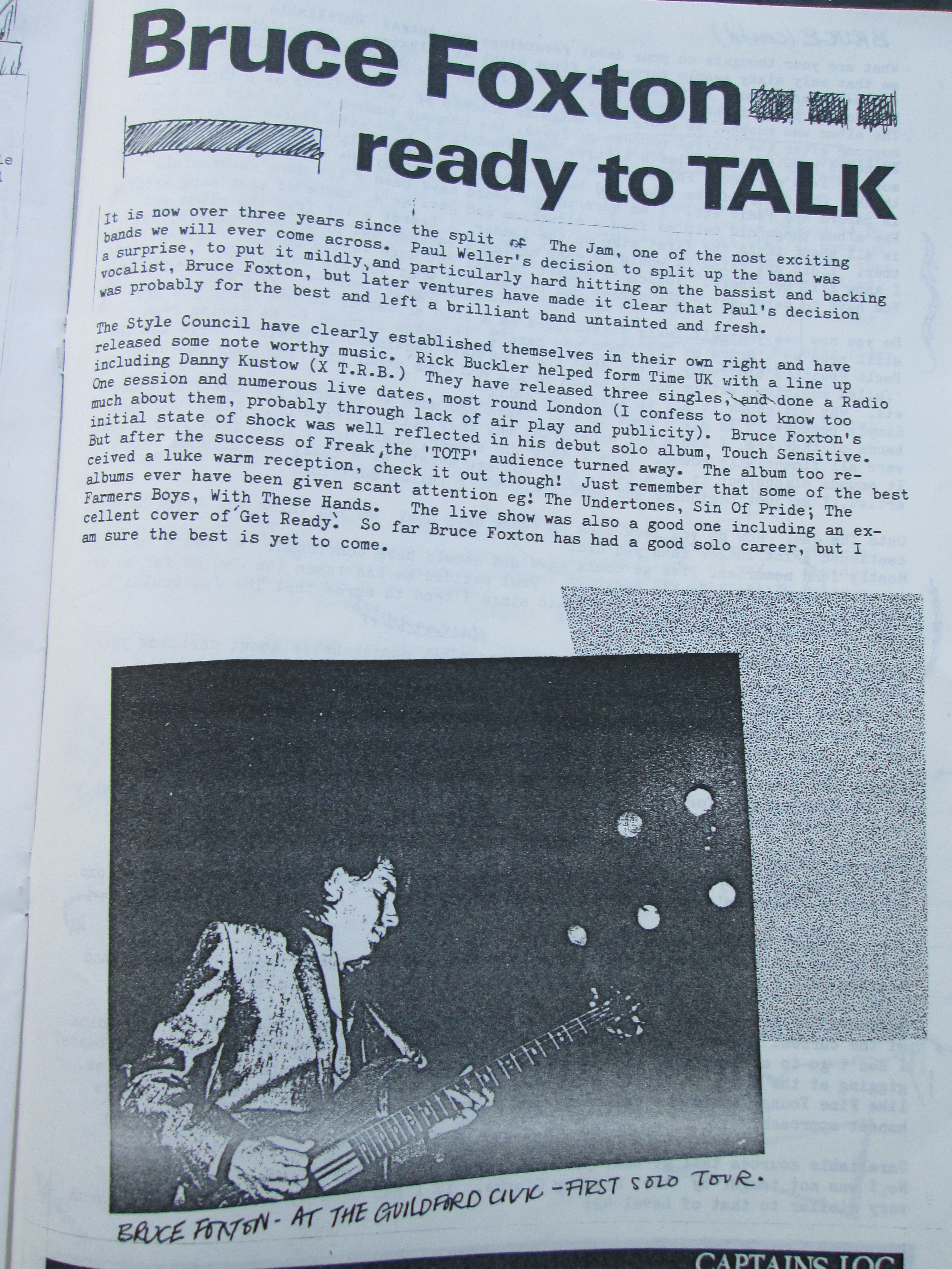 My story starts just over four years after that, when the initial Captains Log fanzine was published, with Foxton my very first ‘proper’ interviewee… albeit by post.