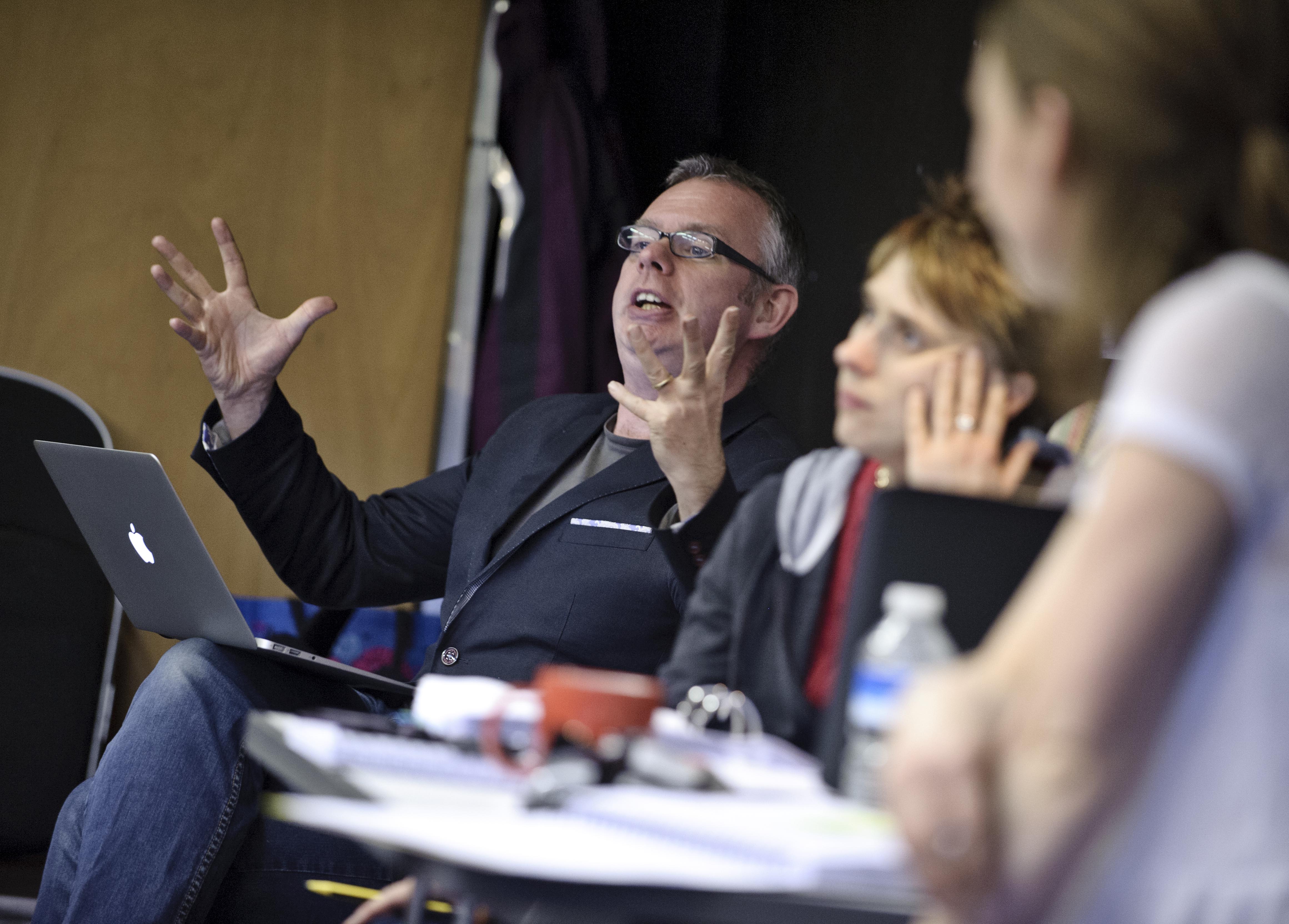 Acting Up: Gareth Cassidy, who plays Sagar Mitchell, and Chris Wright, who plays James Kenyon, in rehearsal