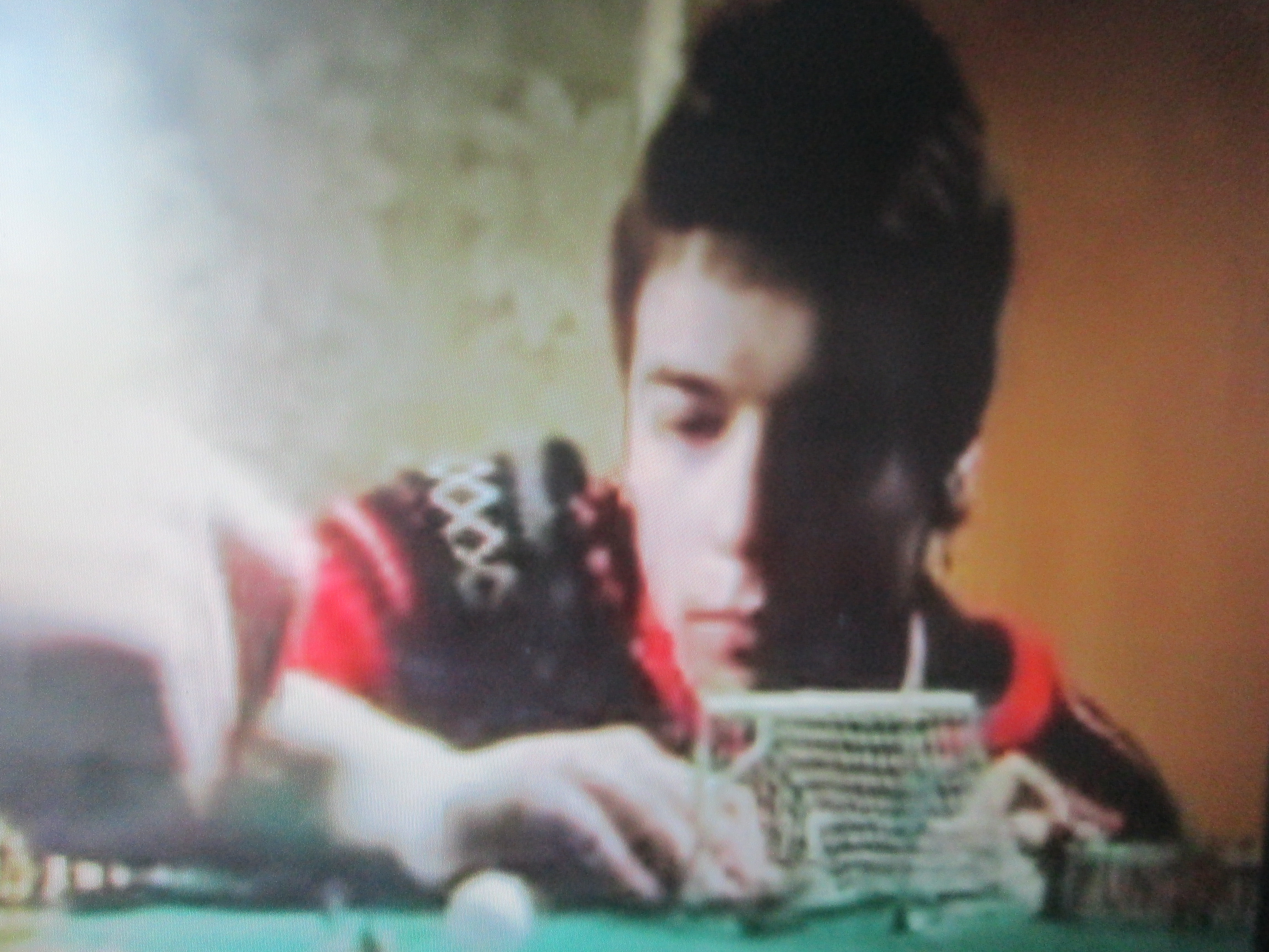 Flick Off: Dee about to witness a highly-illegal Subbuteo flick-kick in 1980’s My Perfect Cousin video