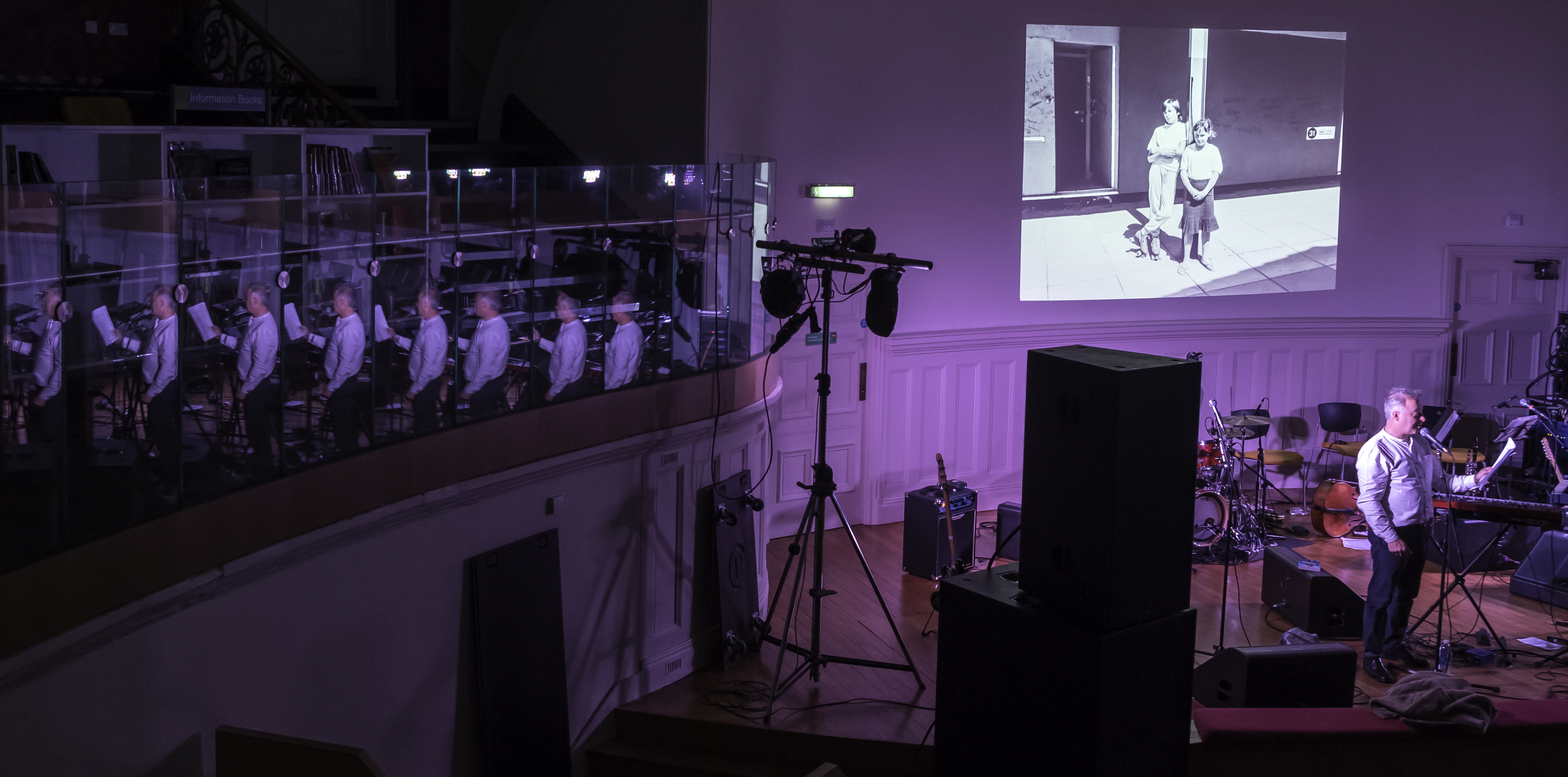 Simon, Erland and Hannah’s quality musicianship and songwriting were augmented by four more fine players (Eddie on drums, Jo on cello, Antonia on violin, and Guy on oboe and clarinets), while a backdrop of archive film clips and photographs was skilfully honed by Liverpool’s McCoy Wynne, setting the tone from the start. And the band played themselves in with Prospect’s opening three songs, neatly blended with documentary footage – Jai Guru Dev, Pennylands and A Death in the Woods all showcasing Erland and Hannah’s spot-on harmonies.