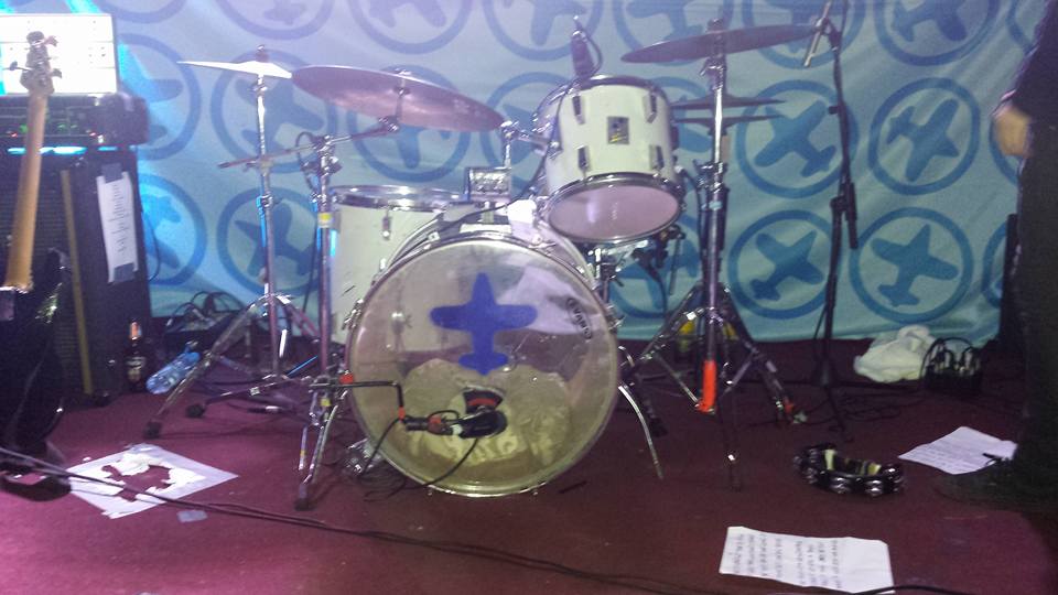 Drum Riser: John Langley’s Blue Aeroplanes kit, at Manchester’s Ruby Lounge (Photo copyright: Kevin Gibson)