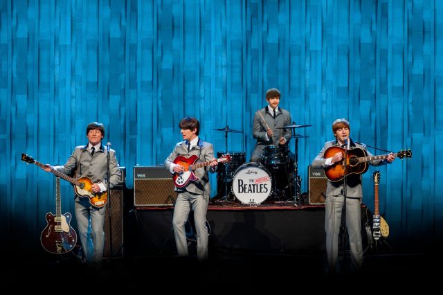 Formed from the original cast of London’s West End show Beatlemania, The Bootleg Beatles have become something of an institution in their own write, as John Lennon may have put it, through their note-perfect recreation of hits from every era of the original band’s treasured song catalogue. The detail is somewhat meticulous, from costumes to authentic period instruments, and from the Liverpudlian banter to the inflective vocal mimicry. What’s more, there’s an uncanny resemblance to the Fab Four, not least Steve, out there as Paul for the past five years.