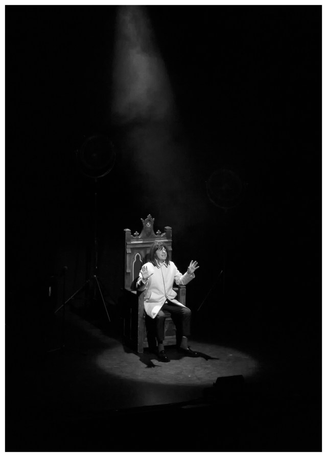 Tidal Flow: Suggs on his throne in his guise as King Cnut at Preston’s Charter Theatre (Photo: Lynda McIntyre)