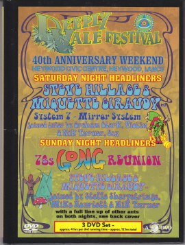 A triple-DVD boxset encased in a 24-page hardback colour book, including 12 hours’ footage from the Deeply Vale Festival 40th anniversary weekend show at Heywood Civic Hall, featuring several artists involved in the early festivals – including Steve Hillage, Miquette Giraudy, System 7, Segs (The Ruts), Graham Massey (808 State), Nik Turner, The Drones, George Borowski, Mike Howlett, Graham Clark (Magick Brothers) and many more – is available via Action Records in Preston, Lancashire, and other good record shops. You can also order it direct by mail or telephone, priced £29, plus £3.50 UK P&P. Any profits will help fund a future Deeply Vale event. To order call 01565 734066, 07970 219701, email ozitrecords@which.net or send to Recordrange, PO Box 116, Northwich, Cheshire, CW9 5UG.