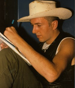 Gordon: “Back in the early ‘90s, my friend Lucky Pete, drummer of Gaz Mayall’s band The Trojans, left my Hank Williams book at Joe’s house. I wanted my book back and lived around the corner from Joe when he was living on Lancaster Road. I remember having a Baby Belling cooker and thought I would make a pie and customise the outside of the box – ‘Slim’s Pumpkin Pie’. I was cooking Sunday lunch at The Globe, Talbot Road at the time. Anyway … I turned up, rang the bell; Joe opened the door and I asked for my Hank book. He went and got it from the lounge and said he read it, which made me happy. Standing at the front door sporting my cowboy hat and pie in hand, I said ‘I made this for you’. He immediately invited me in, with my son Hughie and Lucky Pete. He seemed happy with the pie. We chatted and my son played with his kids Lola and Jazzy. This was the beginning of our friendship.”