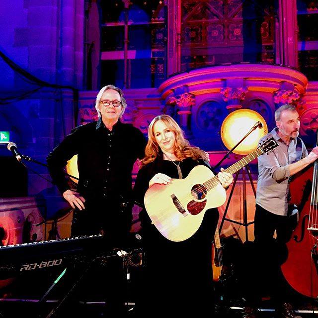 Dropping By: Gretchen Peters at the Cottiers Theatre in Glasgow’s West End on their early 2019 visit, with Barry Walsh, left, and Conor McCreanor