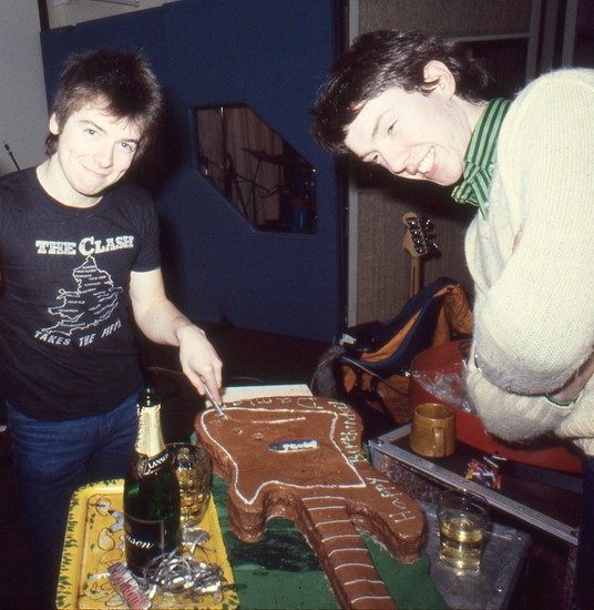“We liked the studio and Roger, booking to do the first album in January ’79. And (the following year) Roger’s mother made a guitar-shaped cake, and (Stiff Records co-founder) Jake Riviera was there. He was managing Elvis Costello, who Roger also worked with. I remember champagne … and wearing a Clash t-shirt.”