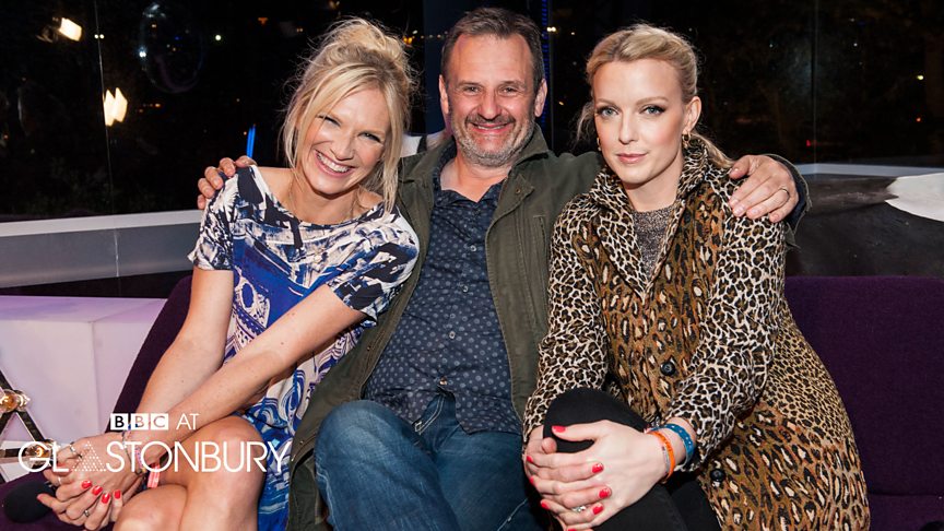 Glasto Stalwarts: Mark Radcliffe with Jo Whiley and Lauren Laverne during the BBC’s past Glastonbury Festival coverage (Photo: BBC)