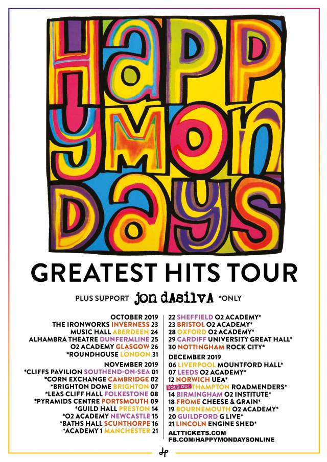 Happy Mondays’ late 2019 tour begins on Wednesday, October 23 in Inverness, the first of four Scottish dates, and runs through until a Saturday, December 21 date at Lincoln’s Engine Shed, highlights including London’s Roundhouse on Thursday, October 31, and North west dates at Preston Guild Hall on Thursday, November 14, a Manchester homecoming at the Academy on Thursday, November 21, and a visit to Liverpool’s Mountford Hall on Friday, December 6.
