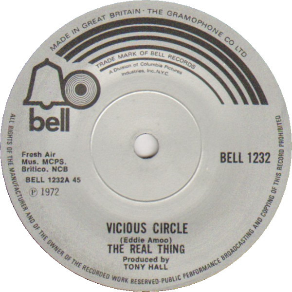 Within three months, in April 1972, they released their debut 45, ‘Vicious Circle’, written by Eddie. Listening back now, I suggested to Chris, I detect more than a few traces of The Temptations or perhaps War there.
