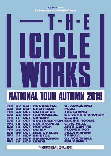 Icicle Works dates: Newcastle, O2 Academy 2 (Friday, September 27th), Sheffield Plug (Saturday, September 28th), Clitheroe The Grand (Friday, October 4th), Farncombe St John’s Church (Saturday, October 5th), Cardiff Globe (Friday, October 11th), Southampton Engine Rooms (Saturday, October 12th), Cottingham Civic Hall (Friday October 18th), Norwich Arts Centre (Saturday, October 19th), Derby Flowerpot (Friday, October 25th), Douglas (Isle Of Man) Villa Marina (Saturday, October 26th), Bristol Thekla (Friday November 1st), Birmingham O2 Academy 2 (Saturday, November 9th), Leeds Brudenell (Friday, November 15th).