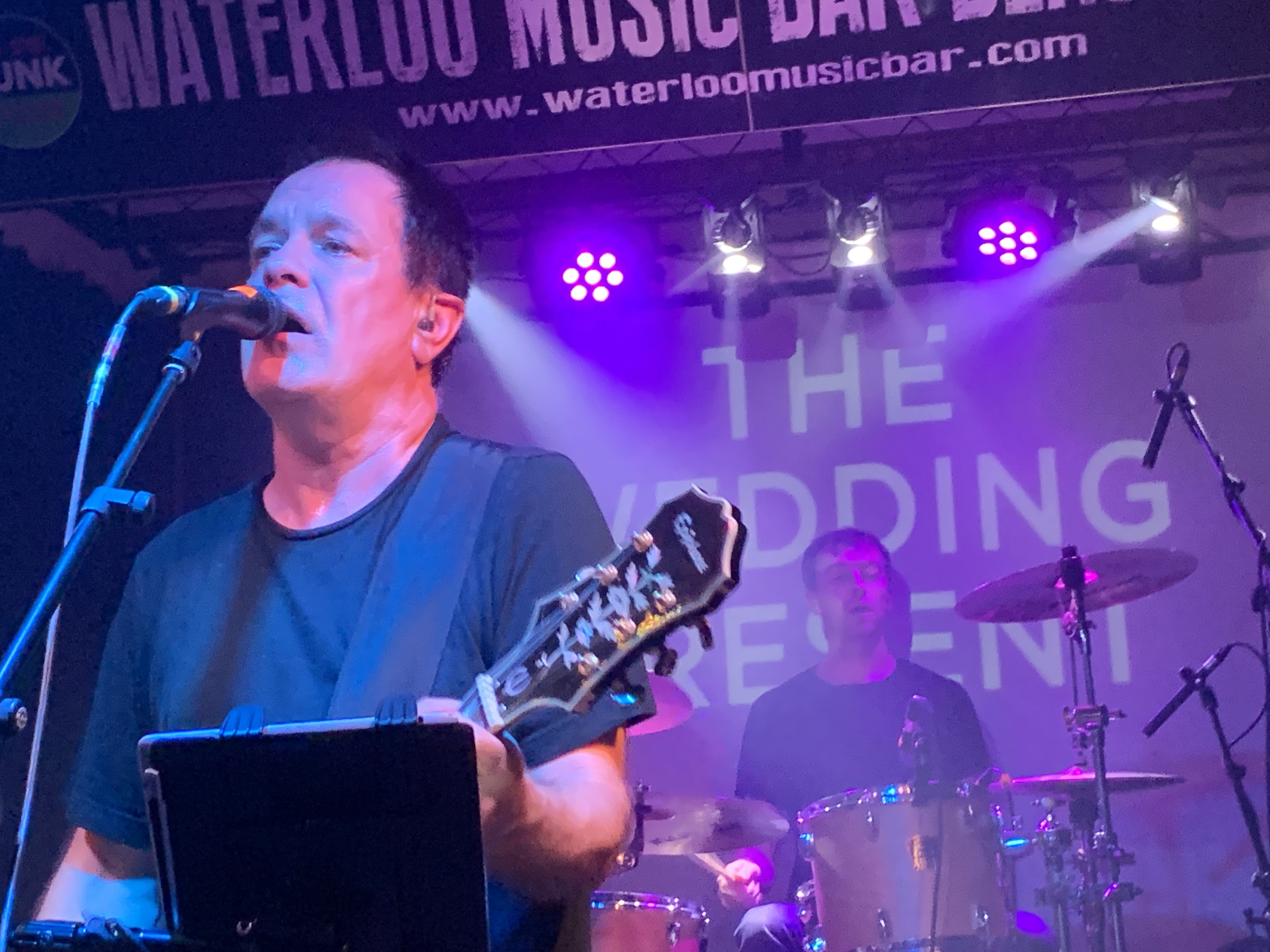 Live Presents: David Gedge. left, leading from the front with The Wedding Present, with Charles Layton on drums, at Blackpool’s Waterloo Bar in late July, 2019 (Photo copyright: Richard Houghton)