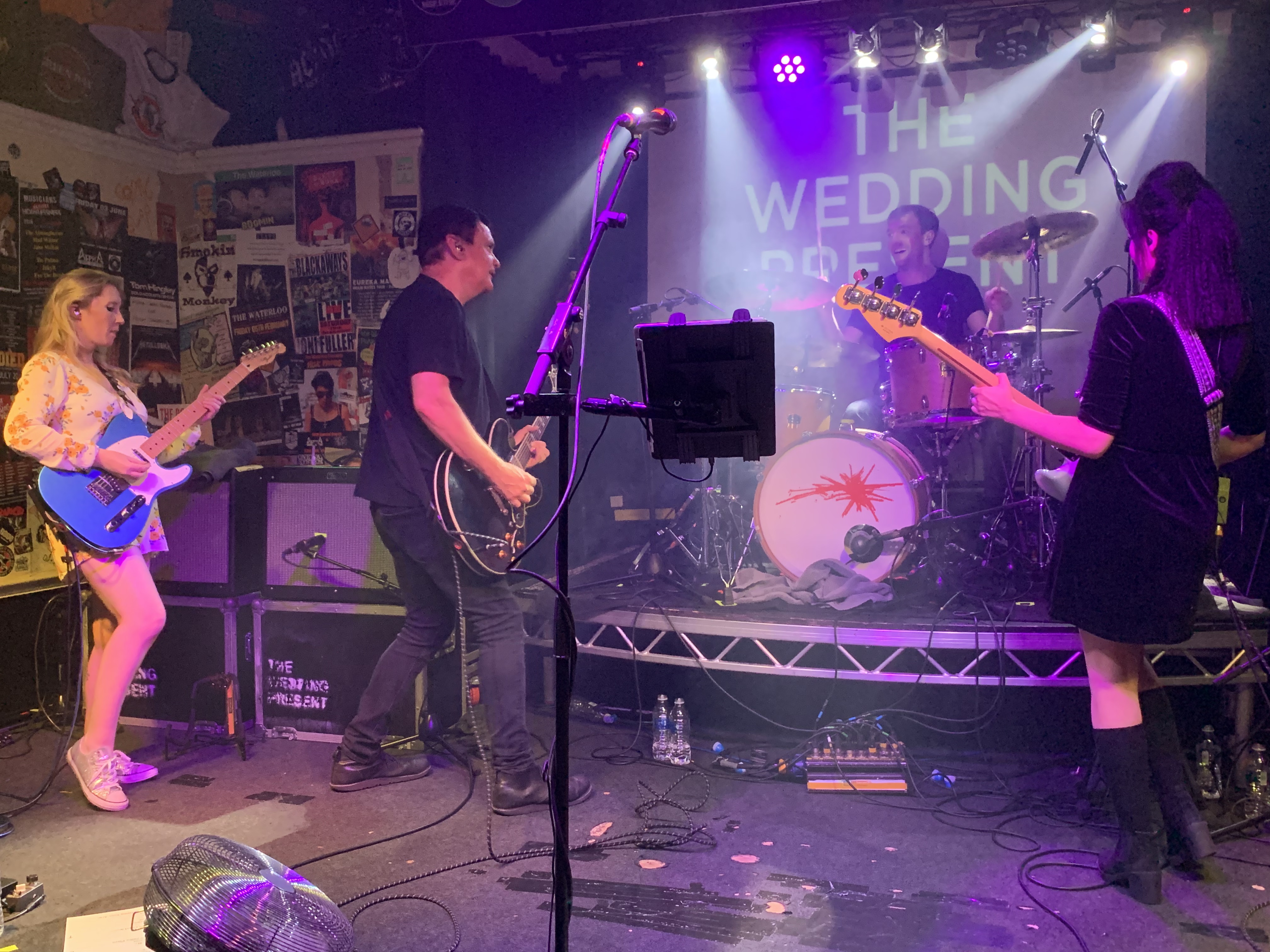 Band Substance: The Wedding Present keeping an eye on drummer Charlie Layton at Blackpool’s Waterloo Bar, July 2019. From the left – Danielle Wadey, David Gedge, Charles Layton, Melanie Howard (Photo: Richard Houghton)