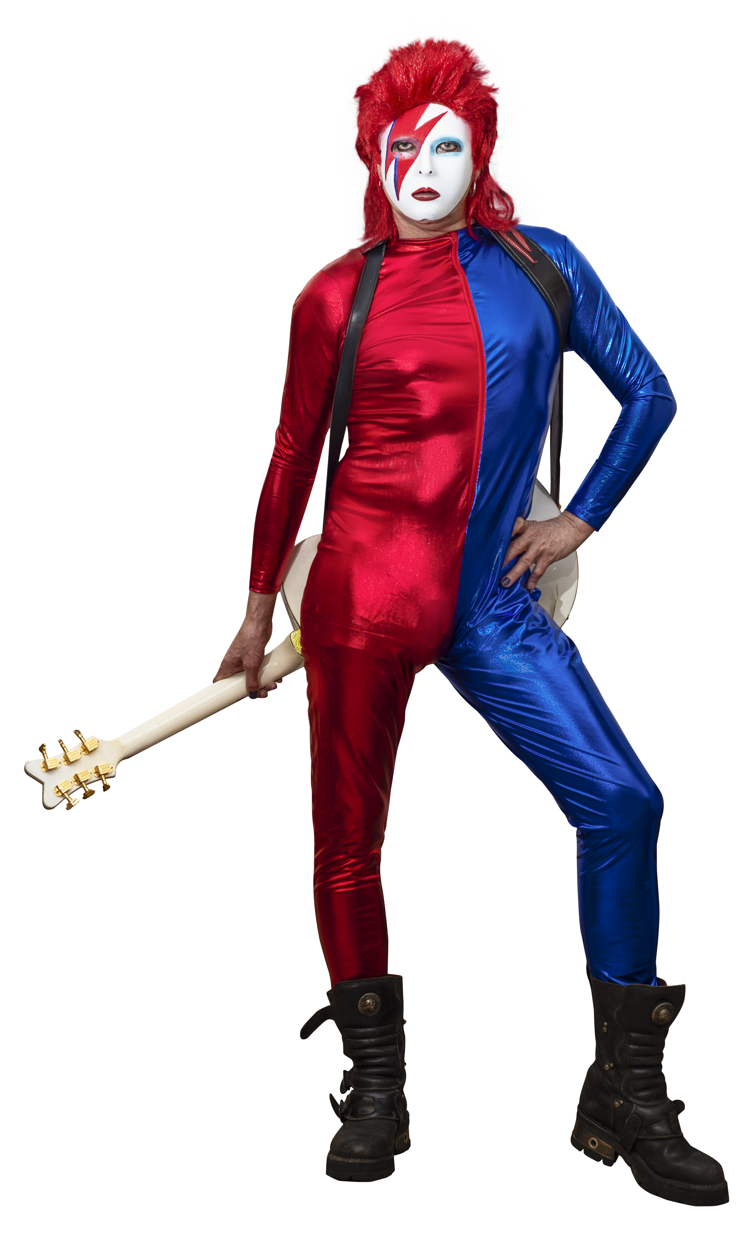 Ziggy Pop: Lee Mark Jones in Bowie-esque garb, his guitar largely a prop, for his A Rock’n’Roll Suicide show