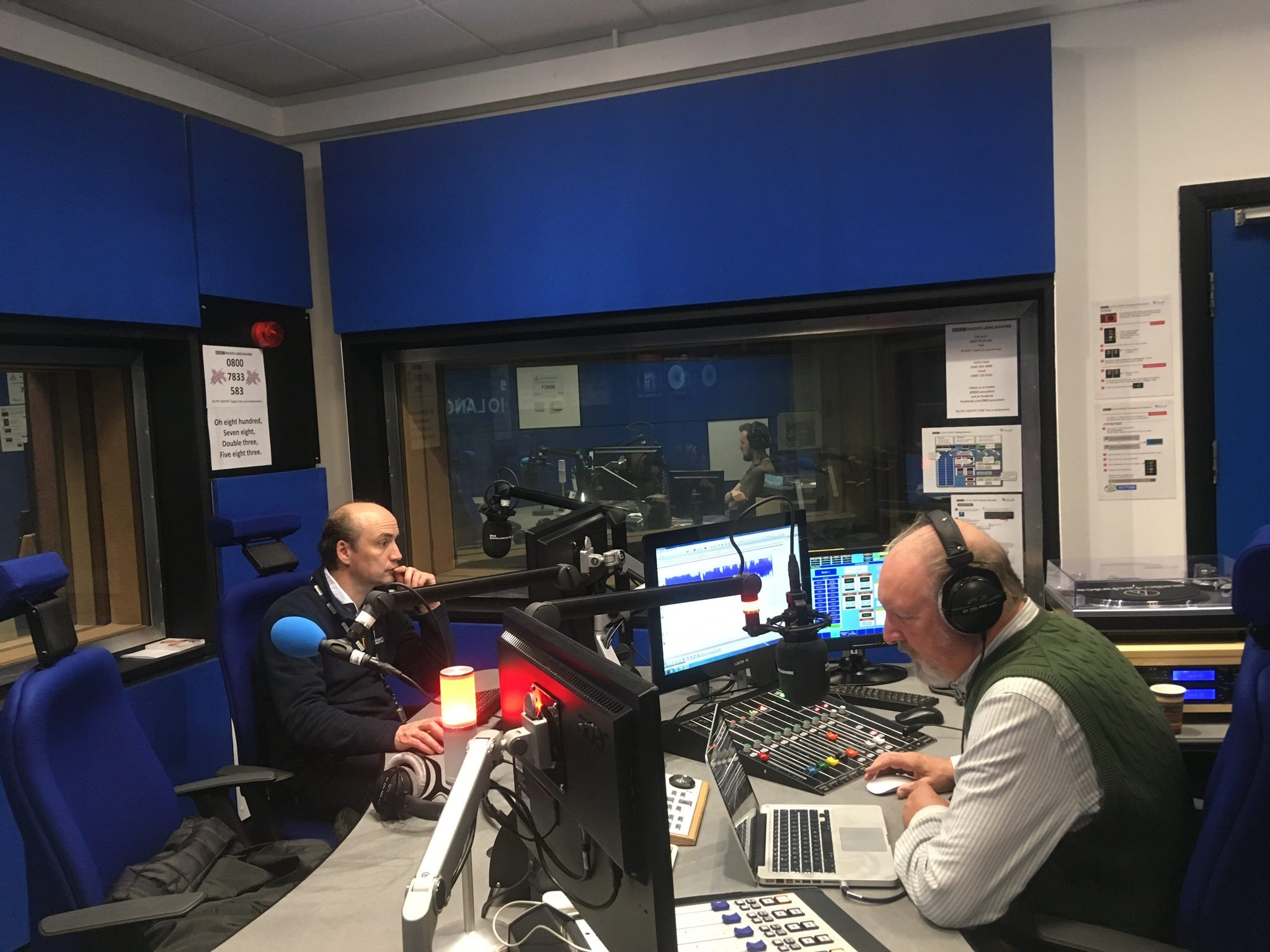 Double Trouble: ‘Jimbo’ Ingham and Steve Barker at work on another Saturday night on air at BBC Radio Lancashire.