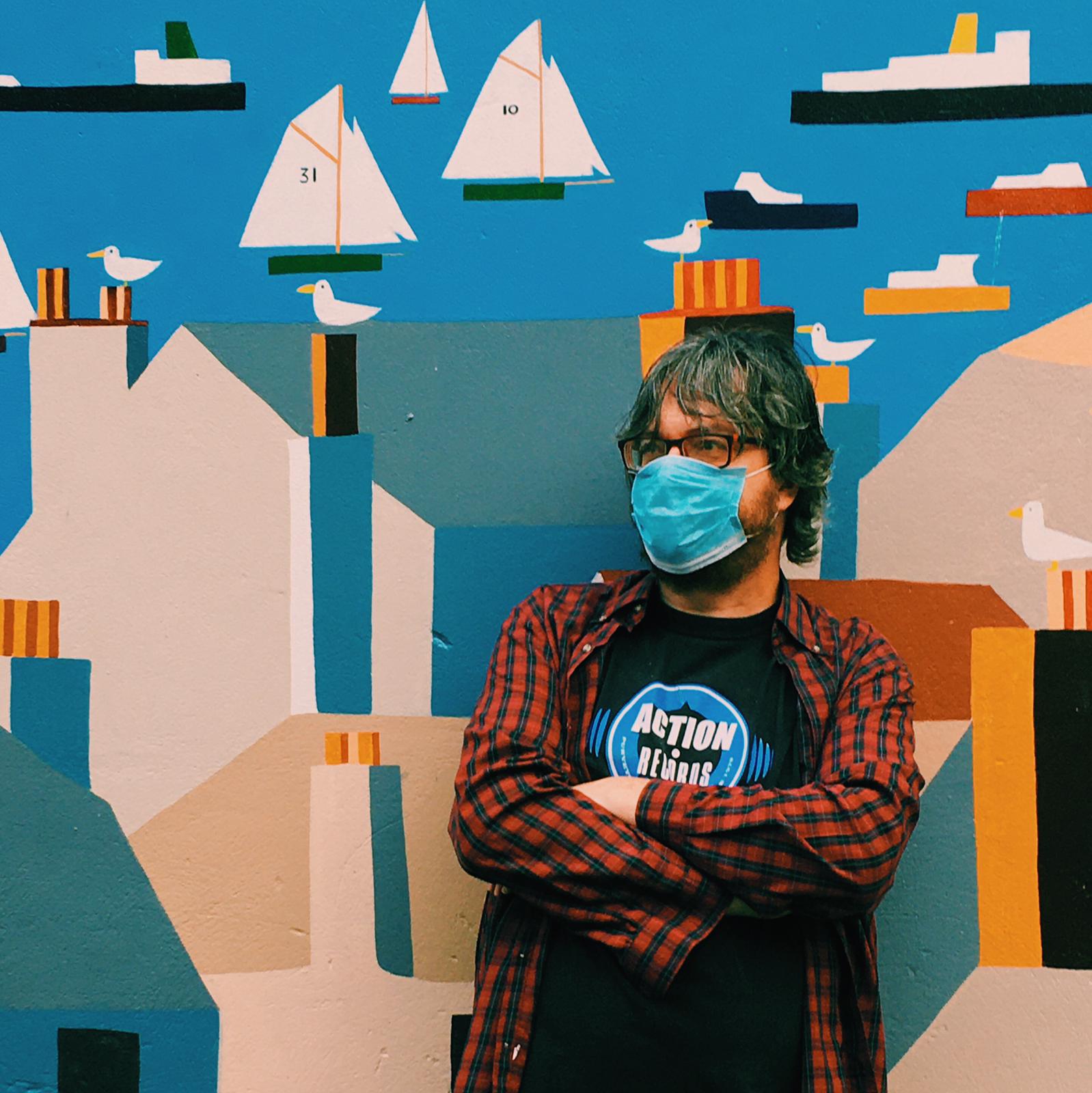 Masked Avenger: The author in Falmouth last month, and already awaiting his next fix of post-virus sunshine (Photo: Lottie Wyatt)
