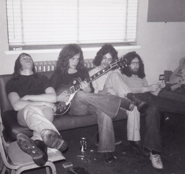 Free Spirits: Simon Kirke, Paul Kossoff, Andy Fraser and Paul Rodgers, backstage, Summer 1970 (Photo: Lucy Piller)