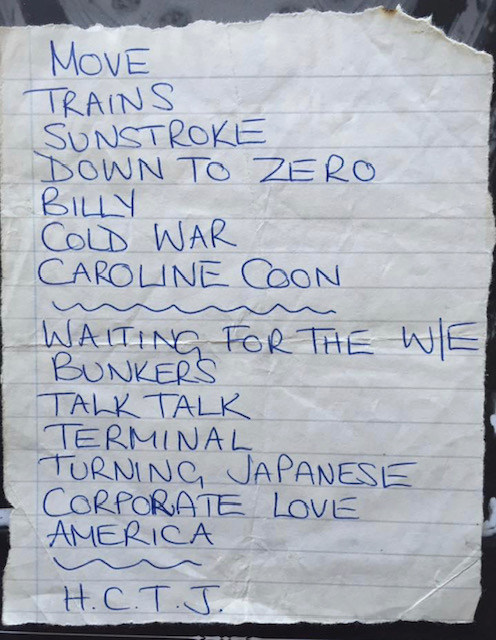 While I didn’t get to see the band first time around, my brother – seven and a half years older – did several times, while my youngest sister – five and a half years older and not at all into punk and new wave like her brothers – was in her first year at Godalming College and dropped by for that gig. And Howard sent me the setlist after our conversation, adding, ‘I think the only song that hadn’t been performed by the old Vapors was ‘Working for the Weekend’. All the others carried over.’
