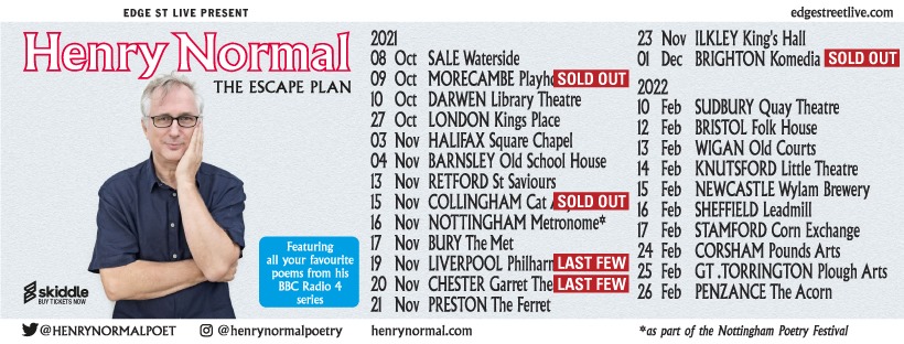 It’s fair to say Henry Normal kept himself busy over the 18 months when the world seemed to stand still, a spell that for this Nottingham-born BAFTA award-winner included publication of two new poetry collections.