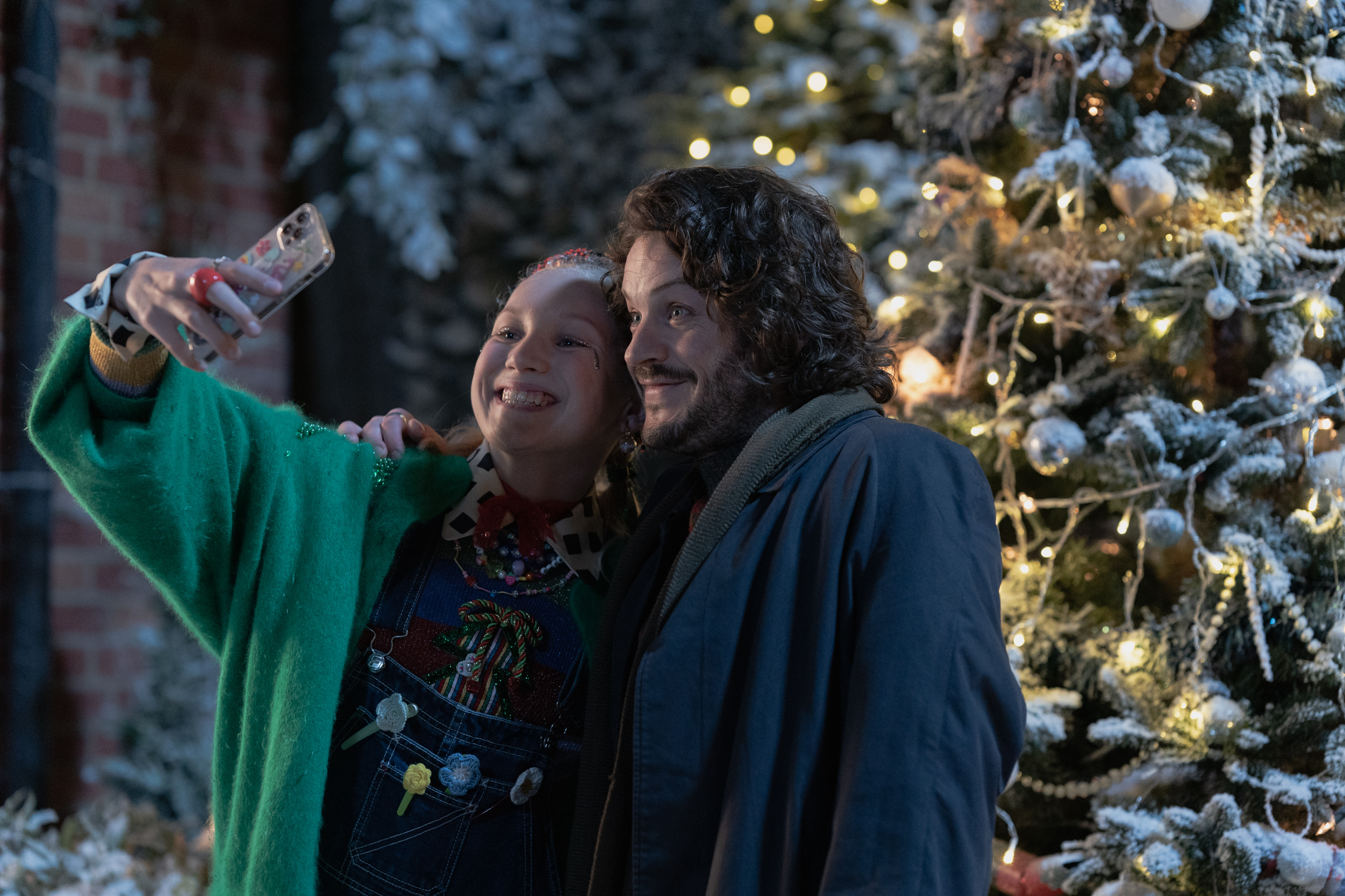 “In terms of this though, it was recorded recently. They’ve been working on A Christmas No.1 throughout this year, Guy Chambers leading on the writing of all these original songs. I won’t tell you too much about the plot, but it’s a romantic comedy, two artists battling it out for a Christmas No.1. One’s a boy band and one’s a sort of goth-thrash metal band, its lead singer, the protagonist – played by Iwan – the writer of this song, written for his niece {played by Helena Zengel}, who has cancer.