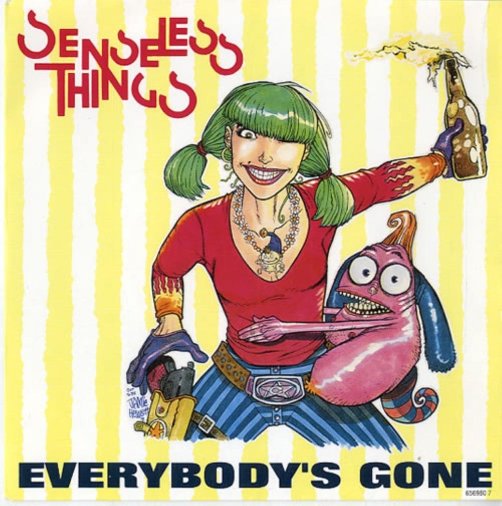 “Jamie did come to a couple of gigs, but there was a TV show called Transmission, and they showed the ‘Girlfriend’ video. Jamie and Alan Martin used to do Tank Girl in a magazine, Deadline, and at the bottom of each episode, would say they were listening to when they drew it, and one time they said that week’s soundtrack was Senseless Things. I think Mark contacted Jamie and asked if he would do a cover. He ended up letting us use a segment from one of his strips for ‘Too Much Kissing’.