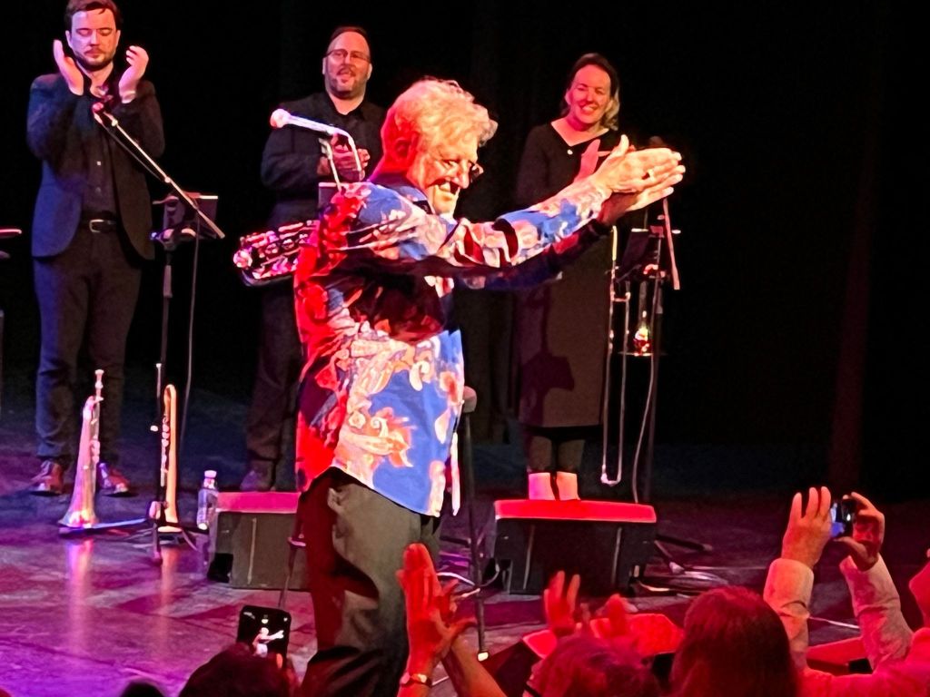 Well, Slade fans – and there were lots at the Lowry who’d seen him many times over the years, certainly many times more than me – and anyone who’s ever loved quality music from its pioneering blues, swing and big band days onwards, can rest assured that Nod’s in good company here, and was on fine form too. And barely three weeks beyond his 77th birthday, he was remarkably lithe. Slade a-lithe, you could say.
