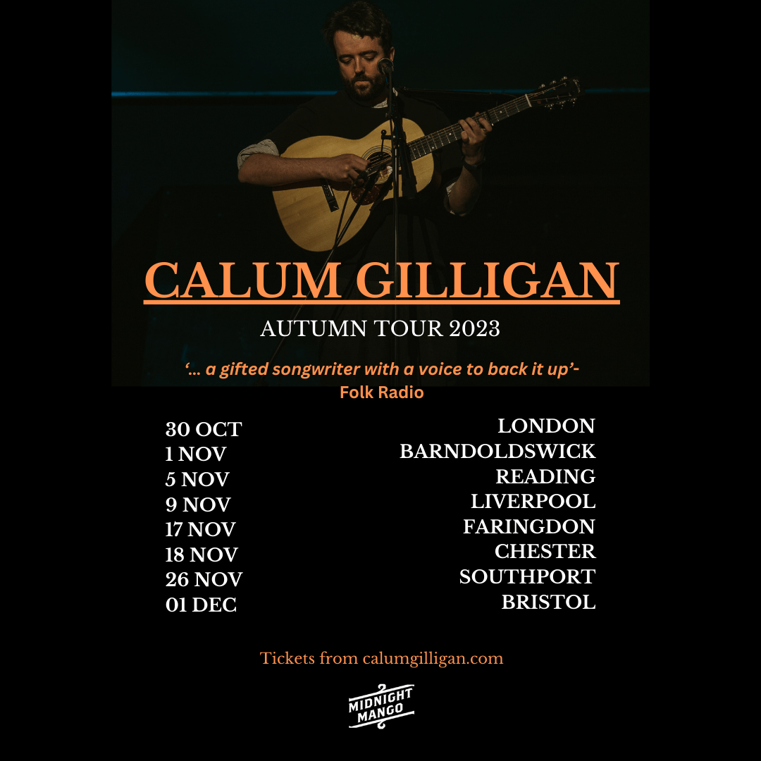 Calum Gilligan’s Autumn tour, remaining dates: ReadiFolk, Reading (Sunday, November 5th); British Music Experience, Liverpool, with Robin Adams (Thursday, November 11th); Corn Exchange, Faringdon, Oxfordshire, with Katie Grace Harris (Friday, November 17th); Live Rooms, Chester, supporting Tankus the Henge (Saturday, November 18th); Bothy Folk Club, Southport (Sunday, November 26th); St George’s Bristol (Friday, December 1st). For more about Calum, his live dates and releases, head here.