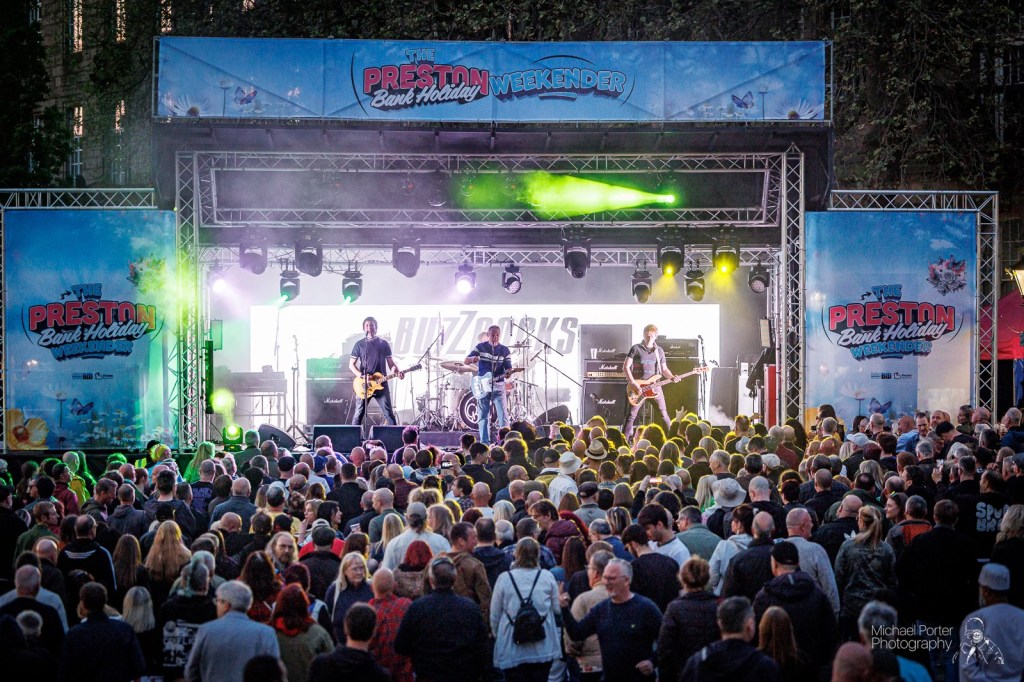 Forty years to the week from my first live solo sighting of Bruce Foxton – at Guildford Civic Hall on his Touch Sensitive LP tour – the Flag Market in Preston was transformed into Nostalgia Central for this punter, the ‘Manchester Rain’ forecast by Steve Diggle’s second-on-the-bill Buzzcocks staying away on this occasion, the impressive setting (Preston’s own Cenotaph to the left of the stage, the Sessions House to the right, the Harris Museum, Art Gallery and Library over our right shoulders) a fitting backdrop in the four hours I caught of an impressive heritage meets locally-honed talent line-up on a grand spring day.