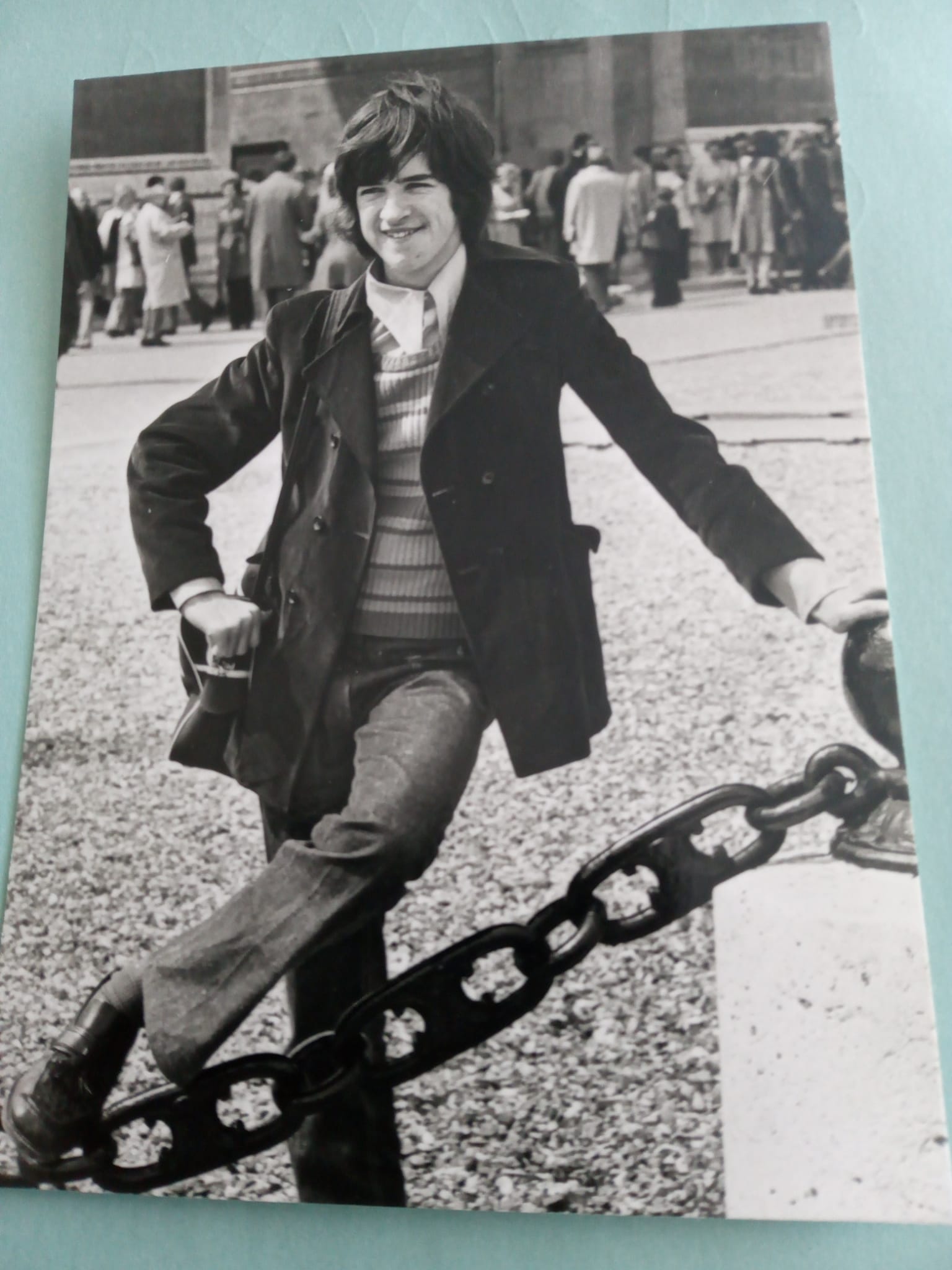 There’s a photo of me in the local paper running after the hearse. Me and Jessie kept running and running and running until we got to the Apollo. We decided to go home and get changed, then go to their hotel. We got there and the place was swarming with fans. We walked up to the main door and could see them walking about inside, so just walked in. We went to the lift, it opened, and Don Powell got out. We got a picture of him. He looked at us as if he got a fright. We said, ‘Where’s the rest of the band, Don?’ He said, ‘They’re in there getting something to eat.’ So we went to their table and who should be sitting there but Noddy, Jimmy and Dave Hill. I’ve got a picture of me sitting with Noddy, with Dave standing behind us. Fans were hitting the windows. They were so jealous.